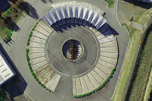The roundhouse designed by Morris-Nunn & Associates is a new steel structure that replicates the traditional ring-shaped building that was built on the site of the long-demolished steam locomotive shed at the Inveresk Railyards workshop in Launceston.