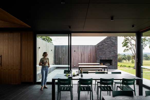 The material pallet was kept minimal, utilising materials that would improve with age to resemble the same with fine wine. On site, balancing indoor- outdoor spaces was crucial as the extreme winds are prominent. Maximising the different faces to the landscape was important depending on your perspective ensured eastern views of kanamaluka (River Tamar), and western views of trousseau grapes were obtained.